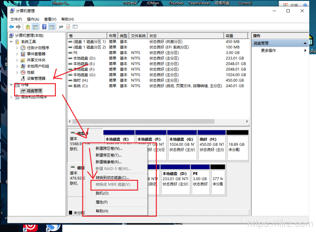 看到有提示“转换成MBR磁盘”,则该磁盘为GPT格式