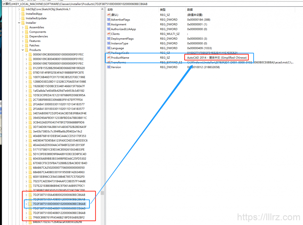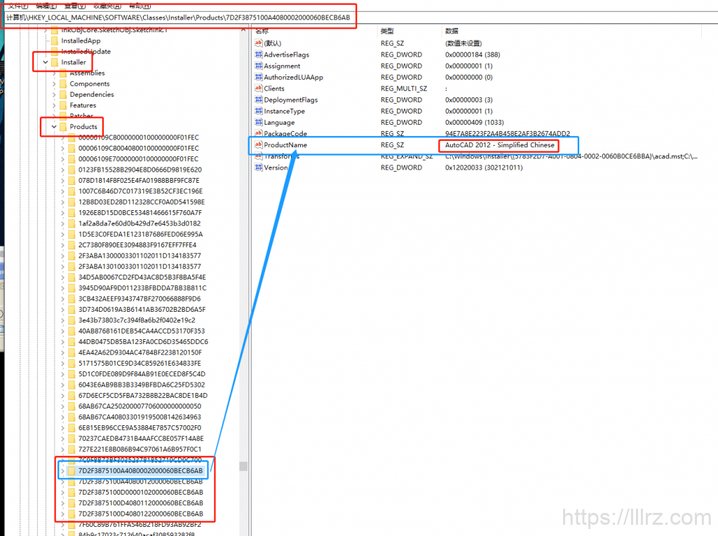 3、找到下面的注册表路径:(此步最重要,CAD真正的安装信息在此目录):